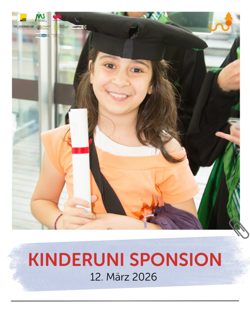Nun ist es soweit! Der neue Termin für unsere feierliche KinderUniGraz Sponsion steht fest und zwar am 12. März 2026! Schnell anmelden und Plätze sichern!