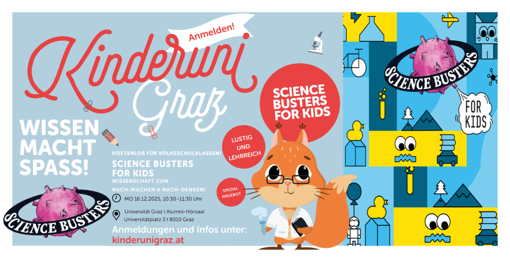 Die Science Busters sind wieder auf der Jagd nach Wissen und Spaß. In ihrem Programm für Kinder zeigen sie, was Wissenschaft kann – nämlich fast alles: Impfstoffe entwickeln, auf den Mars fliegen, krachen, brennen, stinken…